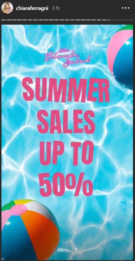E così basta fare swipe up per trovarsi catapultati direttamente nel magico mondo di The Blonde Salad. E soprattutto nel magico mondo dei saldi di Chiara Ferragni. Qui ti aspettano una serie di abiti, abitini e t-shirt della collezione della fashion blogger di Cremona, tutto scontato al 50 per cento. Un ottimo affare per chi da tempo guarda quei capi e aspetta i saldi per poterli acquistare.