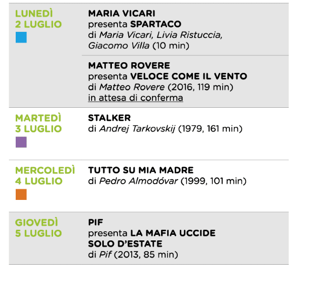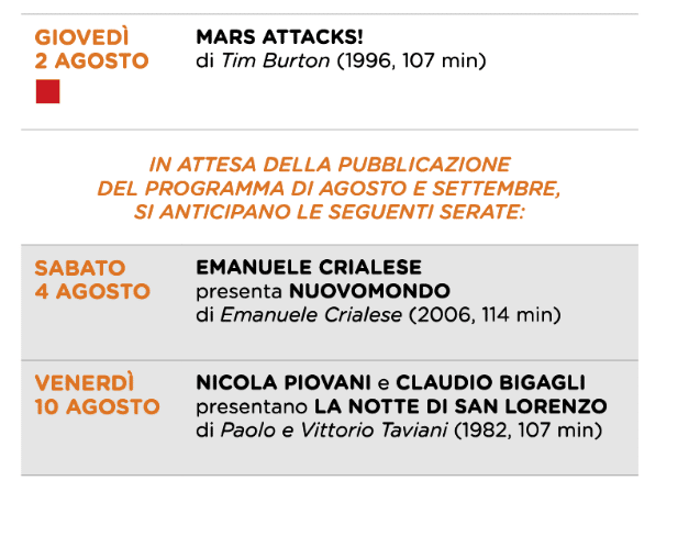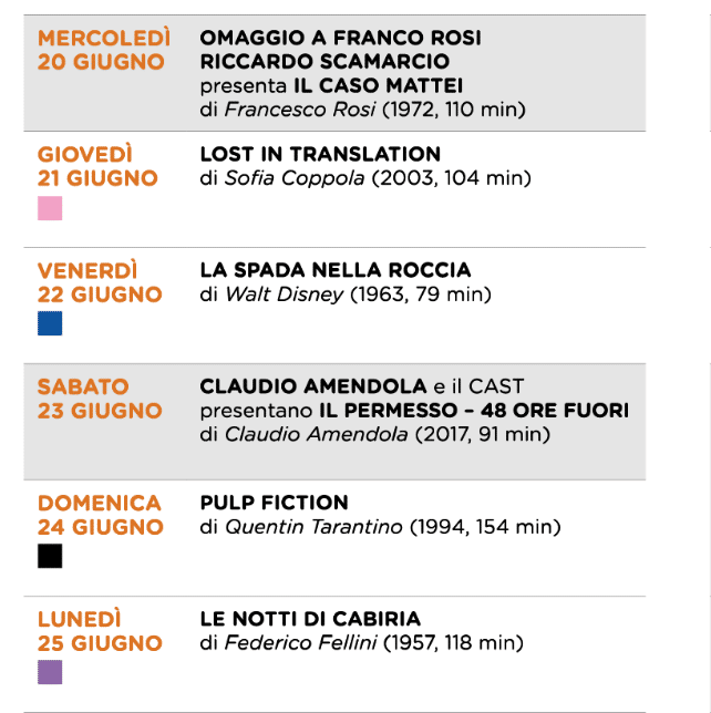I ragazzi del Cinema America, associazione culturale no profit con sede a Roma guidata da Valerio Carocci, hanno diffuso il programma con le date e le nuove location per le proiezioni, gli incontri con registi e attori e i dibattiti organizzati per l’estate 2018.