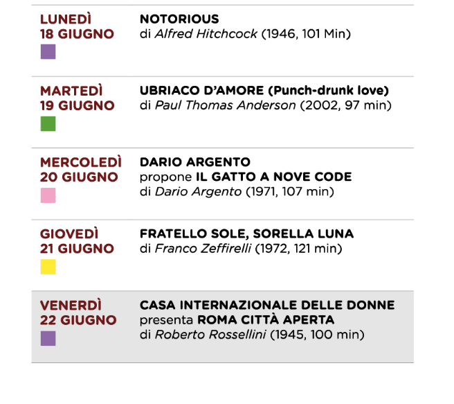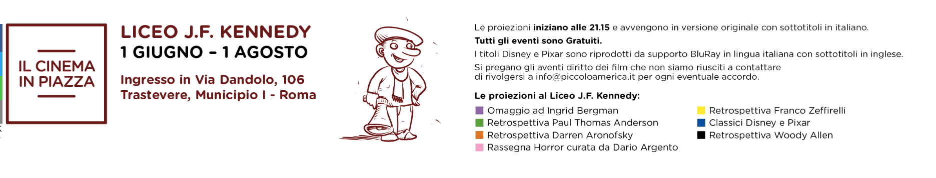 La rassegna inizierà il primo giugno nel cortile del liceo Kennedy, la scuola vicina a piazza San Cosimato dove le proiezioni del Cinema America si terranno fino al primo agosto.