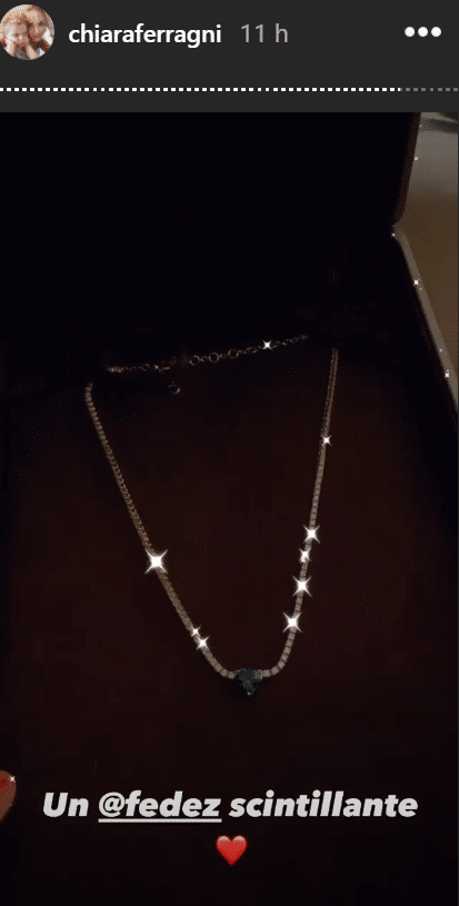 Dopo aver trascorso le vacanze estive principalmente in Sardegna, Chiara e Fedez hanno puntato alla capitale per celebrare due anni d’amore coniugale e, durante una cena romantica, il rapper ha sorpreso la moglie con un regalo luccicante. “Un Fedez scintillante”, ha scritto Chiara in una delle sue storie, immortalando una collana a girocollo tempestata di piccoli diamanti con una pietra verde smeraldo a forma di cuore al centro. L’influencer cremonese non ha perso tempo e ha immediatamente indossato la collana, mostrandola ai suoi fan in un’altra storia Instagram.