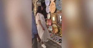 Nelle immagini si vede la ragazza con capelli lunghi e neri, un abito bianco e scarpe sportive. Il video, registrato da alcuni curiosi, ha fatto subito il giro del web.