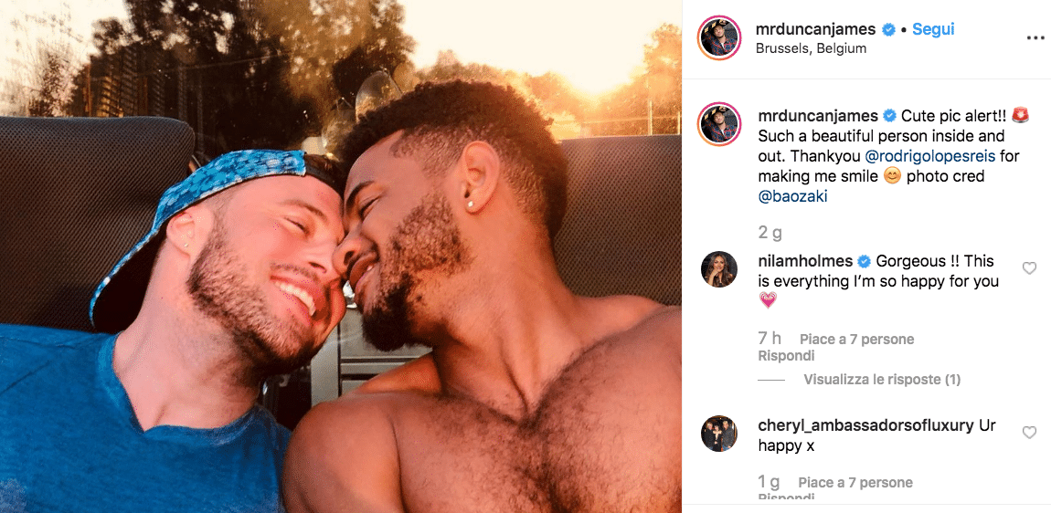 “Allarme foto carina! Una persona così bella fuori e dentro. Grazie Rodrigo Reis per farmi sorridere”, scrive Duncan pubblicando una loro foto insieme sul suo profilo Instagram.