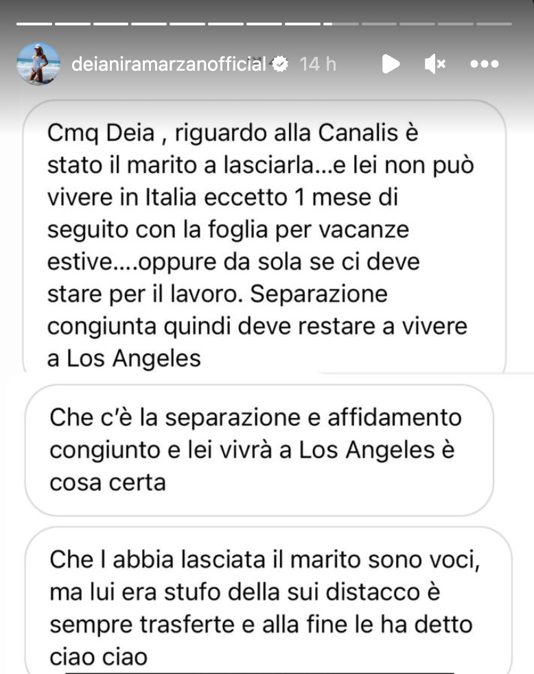 Non è stato Brian Perri a lasciare Elisabetta Canalis così come era emerso sui social dopo un’indiscrezione lanciata da un follower dell’esperta di gossip Deianira Marzano, che aveva postato un messaggio tra le stories del suo profilo Instagram di una fonte vicino alla coppia secondo la quale Elisabetta Canalis non può lasciare l’America perché la separazione con il marito prevede un affidamento congiunto.