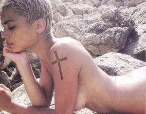 Allora per quale motivo l’artista l’ha postata in queste ore? Nella foto hot si vede la ragazza sdraiata sugli scogli coi capelli biondo-rosa e in evidenza il suo tatuaggio a forma di croce sul braccio sinistro: Sicuramente è una foto d’impatto.