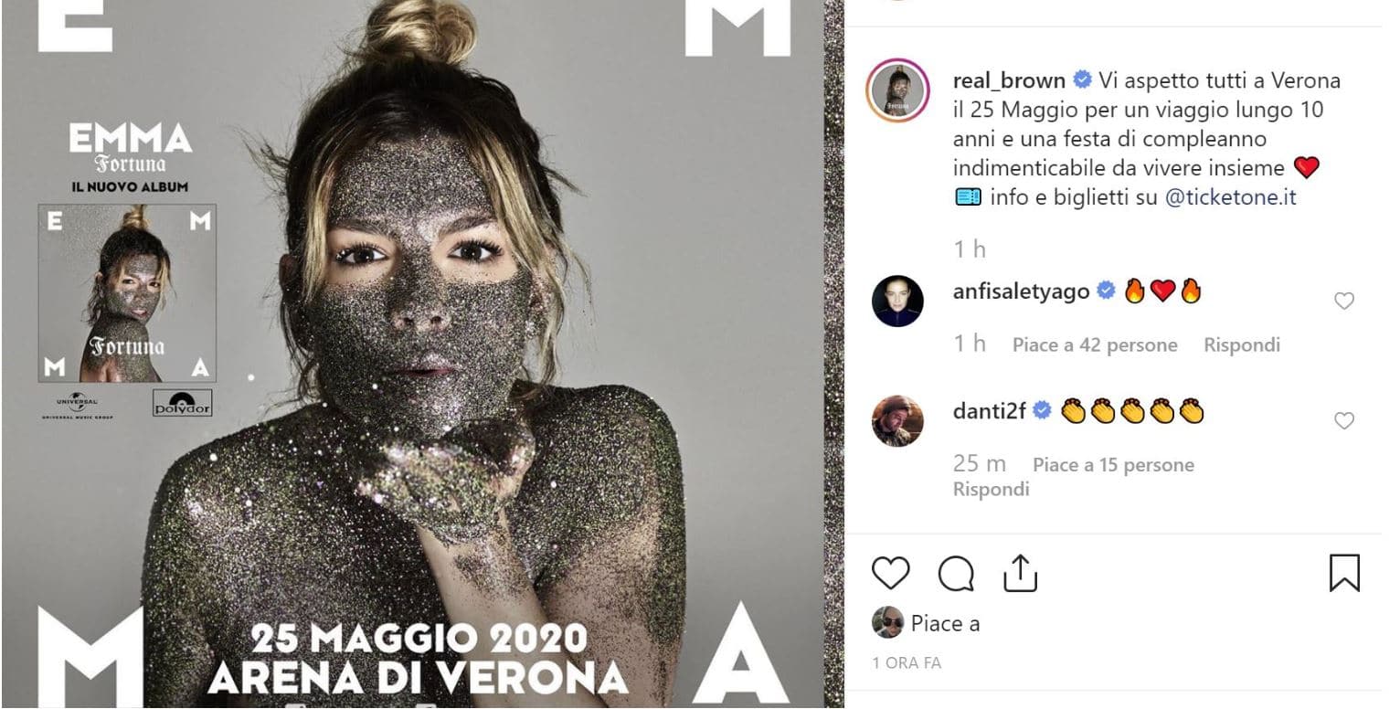 “Vi aspetto tutti a Verona il 25 Maggio per un viaggio lungo 10 anni e una festa di compleanno indimenticabile da vivere insieme”, scrive Emma su Instagram, e pubblica la foto di copertina del suo album.