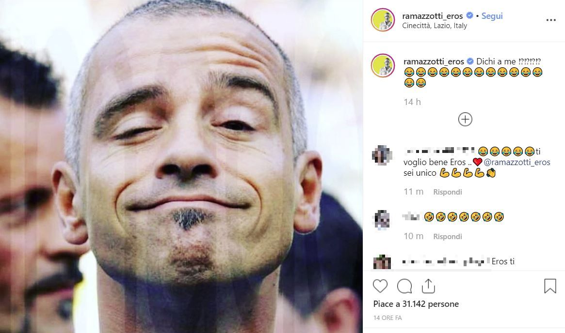 Che Eros Ramazzotti e Marica Pellegrinelli si siano definitivamente lasciati non c’è più dubbio. A smontare qualsiasi ipotesi di una riappacificazione ci ha pensato il settimanale “Chi”, diretto da Alfonso Signorini, che ha immortalato un bacio tra la ex del cantante e l’imprenditore Charley Vezza, il nuovo compagno. Il magazine è uscito oggi, ma le immagini hanno iniziato a circolare sui social già giorni fa. Ovviamente, le ha viste anche Eros Ramazzotti. Che oggi sul suo profilo Instagram ha reagito. A modo suo.