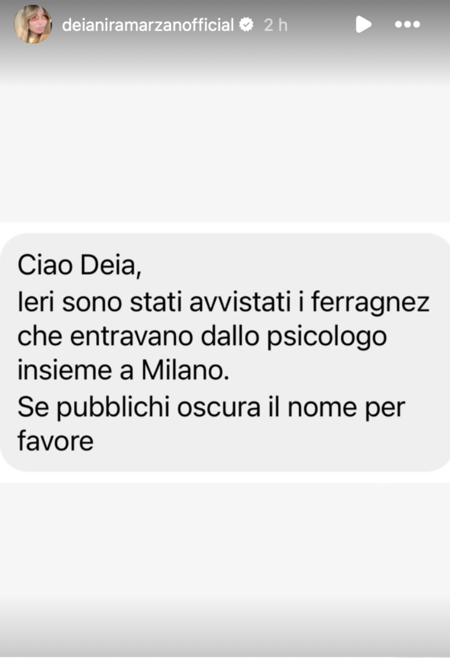 A lanciarla è l’esperta di gossip Deianira Marzano, che sul suo profilo Instagram, ha pubblicato una segnalazione anonima di un utente che ha chiesto di rimanere anonimo.
