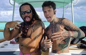 Quello dell’uomo che accompagna i Ferragnez è di un rosa accesso, quello di Fedez è chiaro e sbatte con la pelle abbronzata (a metà) del rapper. Le foto sono due: una mostra la parte anteriore e l’altra quella posteriore del costume.