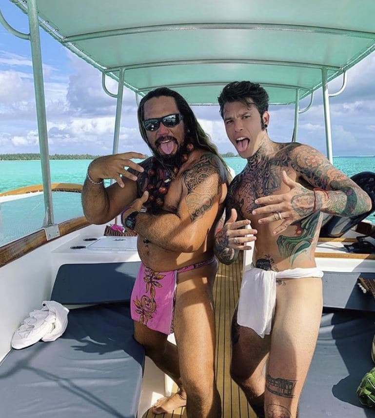 Fedez indossa un tanga tipico della Polinesia, ma il risultato è imbarazzante