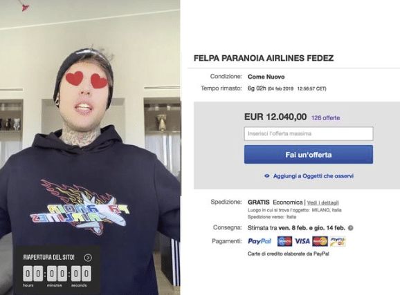 Alcune felpe ricevute in omaggio insieme al nuovo disco di Fedez sono state messe in vendita su Ebay a prezzi esorbitanti: fino a 12mila euro.