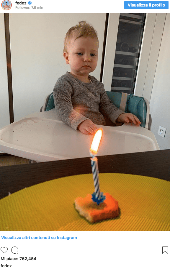 Undici mesi da festeggiare e papà Fedez ha dimenticato di comprare la torta dell’anniversario. Ma ha cercato di rimediare, prendendo una candelina e mettendola sopra una fetta biscottata rosicchiata.