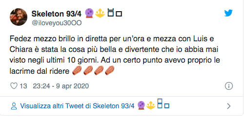 Il rapper nell’ultima diretta Instagram con il suo amico Luis Sal e con il cantante il Cigno Nero ha ammesso di non reggere molto l’alcol e di essere un po’ brillo. “Sono un po’ ubriaco ragazzi. Quanto ho bevuto due mezzi bicchieri di vino. Però io non bevo da un mese e mezzo, io non è che reggo”, dice Fedez nel collegamento social.