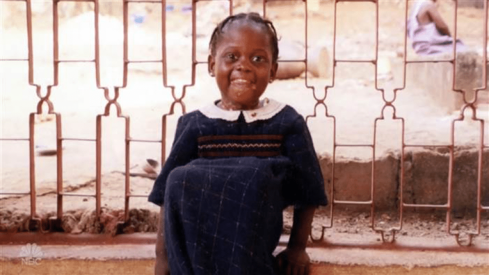 La sua vita è difficile sin dall’inizio: suo padre viene ucciso dai ribelli del Fronte Unito Rivoluzionario, mentre la madre muore di stenti. Abbandonata in un orfanotrofio dove ha subisce sevizie, la svolta positiva nella sua vita arriva quando viene adottata a quattro anni da due pensionati del New Jersey nel 1999.
