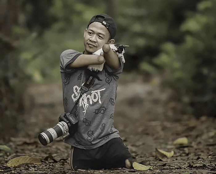 Ha 24 anni, è indonesiano, è un fotografo professionista specializzato in ritratti, e ha più di 46mila follower su Instagram. Ma probabilmente la principale peculiarità di Achmad Zulkarnain è che, pur essendo nato senza braccia e senza gambe, ha lottato per realizzare il suo sogno.