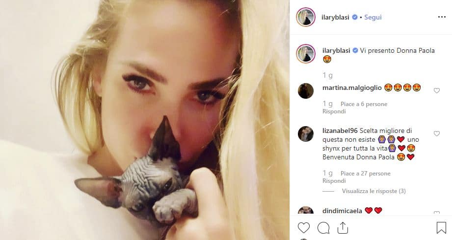 “Vi presento Donna Paola”, scrive la show girl sul social, condividendo la foto di una tenera gattina.