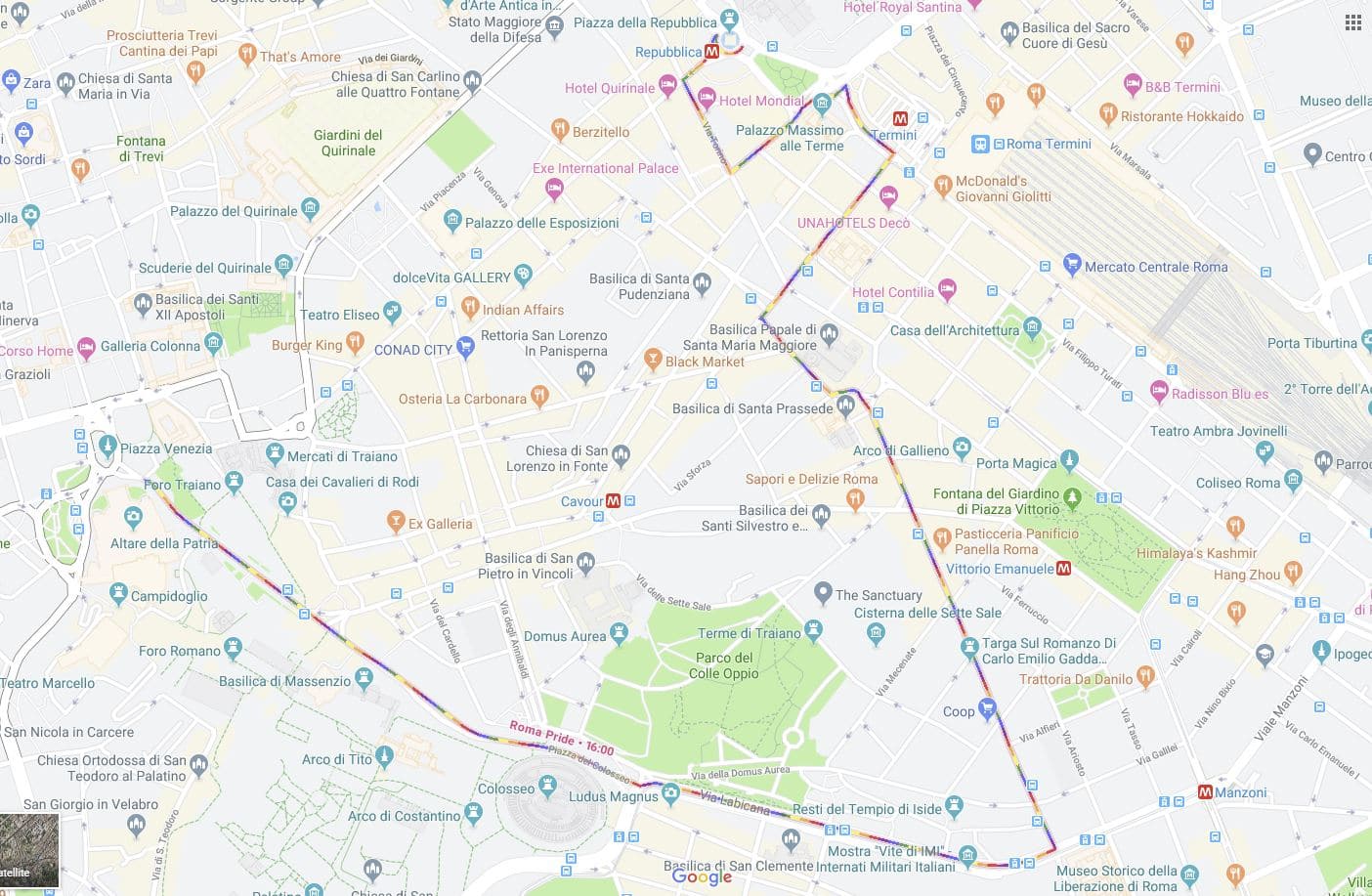 Per l’occasione, Google Maps ha indicato il percorso colorandole non con il solito blu, ma con i colori del Pride.