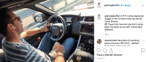 Una frase che sembra essere il giusto accompagnamento di un viaggio on the road, se non fosse per un piccolo dettaglio che non è passato inosservato ai follower. Buffon, infatti, sta viaggiando a 155 km/h senza indossare la cintura di sicurezza. Poi, sulla sfondo, si nota un pacchetto si sigarette.