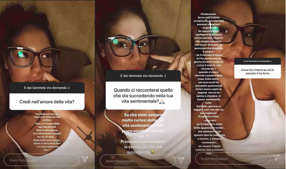 L’influencer si è così lasciata andare a una serie di confidenze notturne su Instagram. “Quando ci racconterai quello che sta succedendo nella tua vita sentimentale?”, le ha chiesto un utente nelle domande delle stories. “So che siete sempre molto curiosi della mia vita sentimentale e mi piace condividerla con voi. Prima, però, vorrei capire io stessa ciò che sta succedendo”, ha risposto Giulia De Lellis.