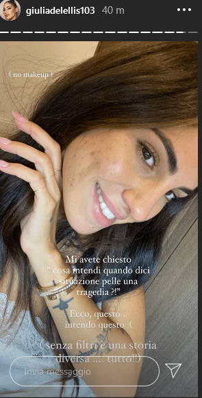 Giulia De Lellis mostra i segni dell’acne sui social: “Senza filtri e senza trucco”