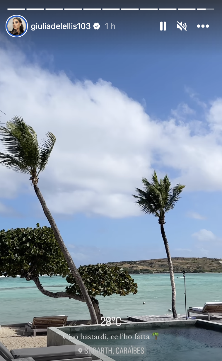 Alla fine, Giulia De Lellis è riuscita ad arrivare a destinazione, ovvero a Saint Barth, nei Caraibi: “Ciao bastardi, ce l’ho fatta”.