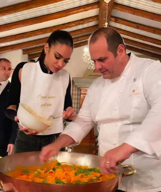 L’ex concorrente di Amici, romana doc, ha scelto Da Vittorio a Brusaporto per la cena di compleanno, uno tra i ristoranti d’eccellenza assoluta nella scena italiana, tristellato ed entrato nella mitica guida Rossa Michelin. Al tavolo tutti brindano alla serata speciale e gustano portate prelibate.