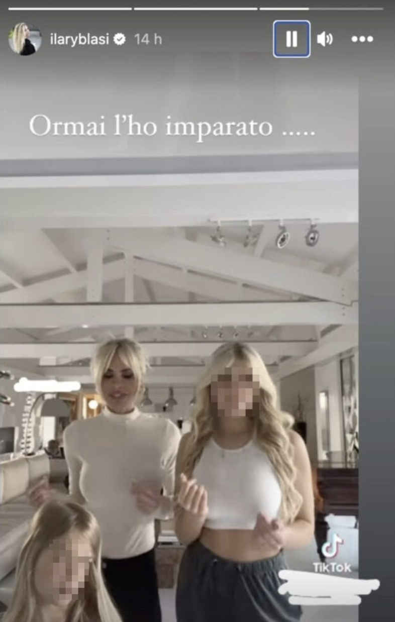 Nella prima, si vedono Ilary Blasi e la figlia Isabel, vestite uguali, mentre si abbracciano. Nella seconda stories, invece, le due ballano insieme su TikTok.