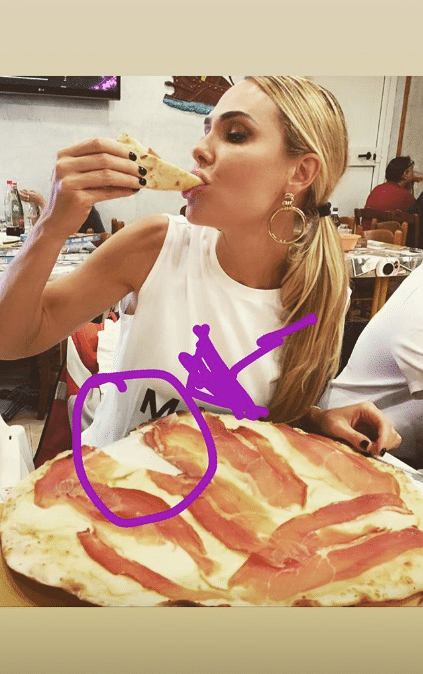 In una delle stories realizzate successivamente da Ilary Blasi, infatti, la conduttrice ha fatto notare, disegnando una freccia, che il pezzo di pizza che stava mangiando era realmente mancante dal piatto.