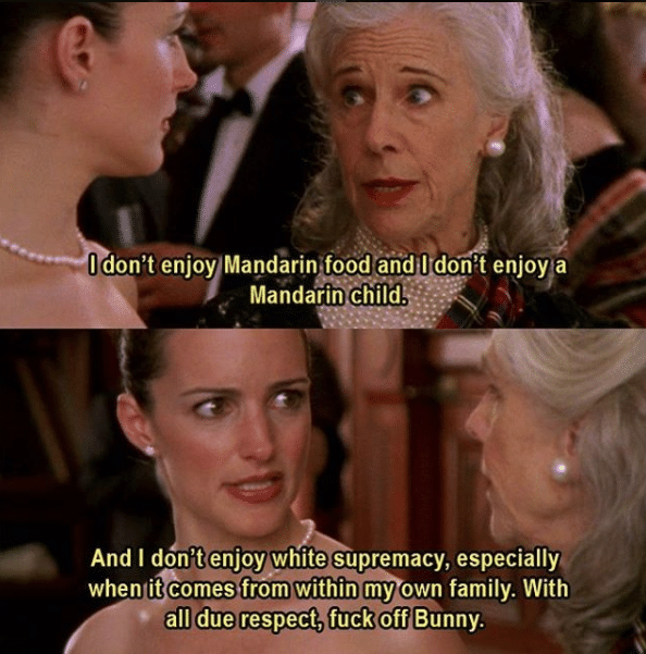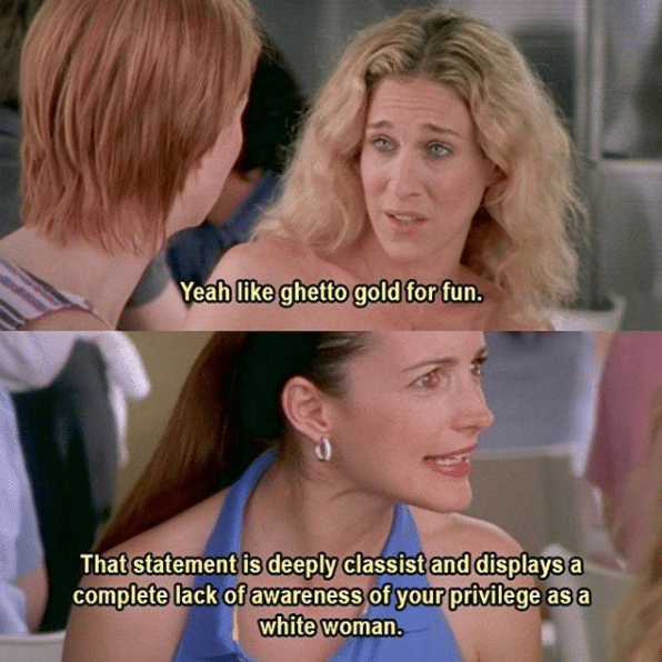 Mentre alla presa in giro sull’abbigliamento usato nel ghetto, la nuova e saggia Charlotte annuncia, severa: “La tua dichiarazione è profondamente classista e rivela una completa mancanza di consapevolezza del tuo privilegio in quanto donna bianca”.
