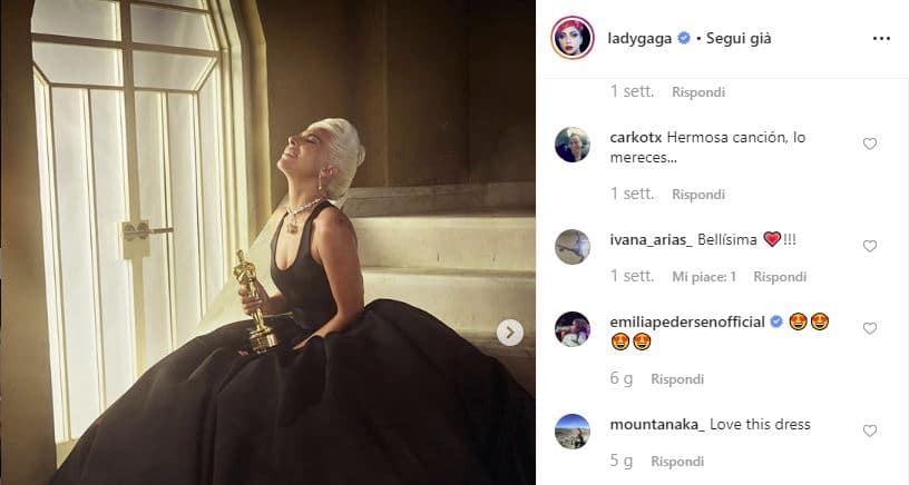 Durante la celebre notte degli Oscar di marzo 2019, invece, Gagà optò per i classici capelli biondi, quando fece sognare il pubblico del Dolby Theatre insieme a Bradley Cooper cantando Shallow, la colonna sonora del film.