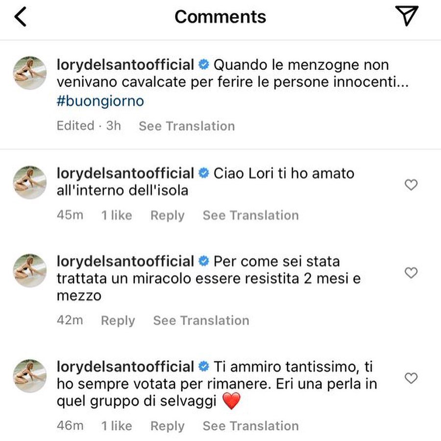 A tentare di spiegare quanto accaduto è stato lo staff della showgirl che, sempre sul suo profilo Instagram, ha pubblicato il seguente messaggio: “In merito alla notizia uscita sui principali mezzi di comunicazione, intendiamo precisare che la signora Lory Del Santo, attualmente in Honduras, non è in possesso di uno smartphone. Si vuole precisare che i commenti effettuali dall’account della signora Del Santo sono stati pubblicati in buona fede dallo staff al solo scopo di documentare la riconoscenza dei fan che è stata dimostrata nei direct”.