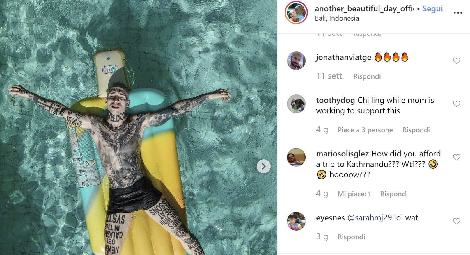 È questo il caso in cui le entrate sono praticamente pari a zero e le uscite sono enormi. Catalin Onc ed Elena Engelhardt sono due ragazzi tedeschi, belli, tatuatissimi e seguitissimi, ma senza il becco di un quattrino. Ci pensano i genitori, infatti, alle loro vacanze in giro per il mondo.