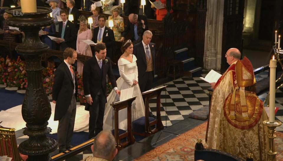 Eugenia è arrivata alla cappella con suo padre, il principe Andrea, nella stessa Rolls Royce di Kate Middleton per il matrimonio del 2011 con il principe William.