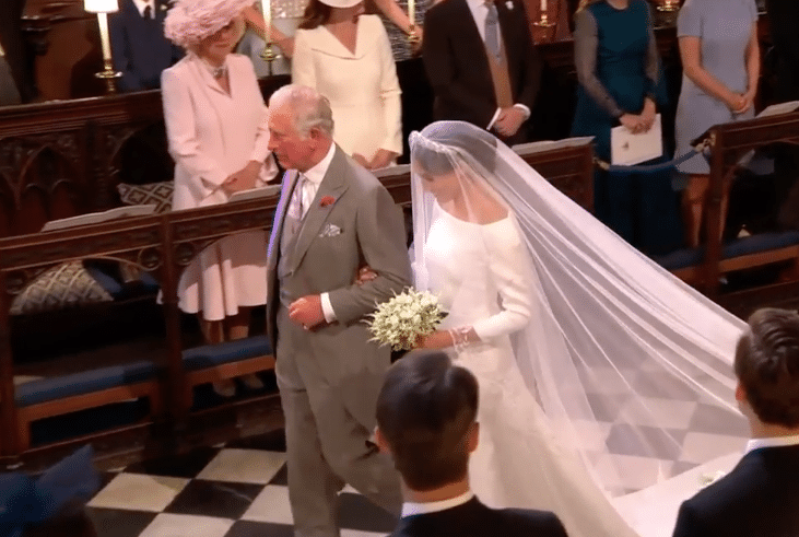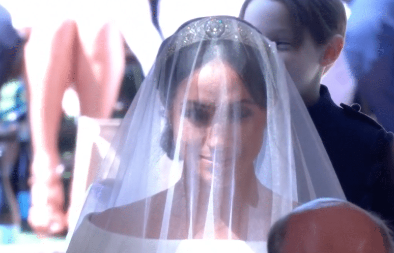ore 12.25 – Meghan Markle sta per arrivare alla cappella St. George al Castello di Windsor. Dalle prime immagini si può vedere che Meghan indossa un abito bianco con il velo e la tiara.