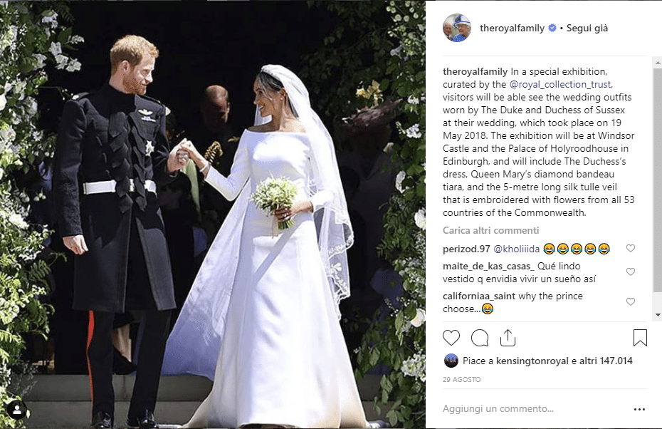 Il 19 maggio scorso ha dato prova di grande gusto indossando il suo abito da sposa firmato Givenchy. Classico ma dalla linea assolutamente originale, l’abito da sposa della duchessa di Sussex è stato subito apprezzato da molti. Come pure il secondo vestito indossato nel giorno del sì, per il ricevimento, della maison di Stella McCartney.