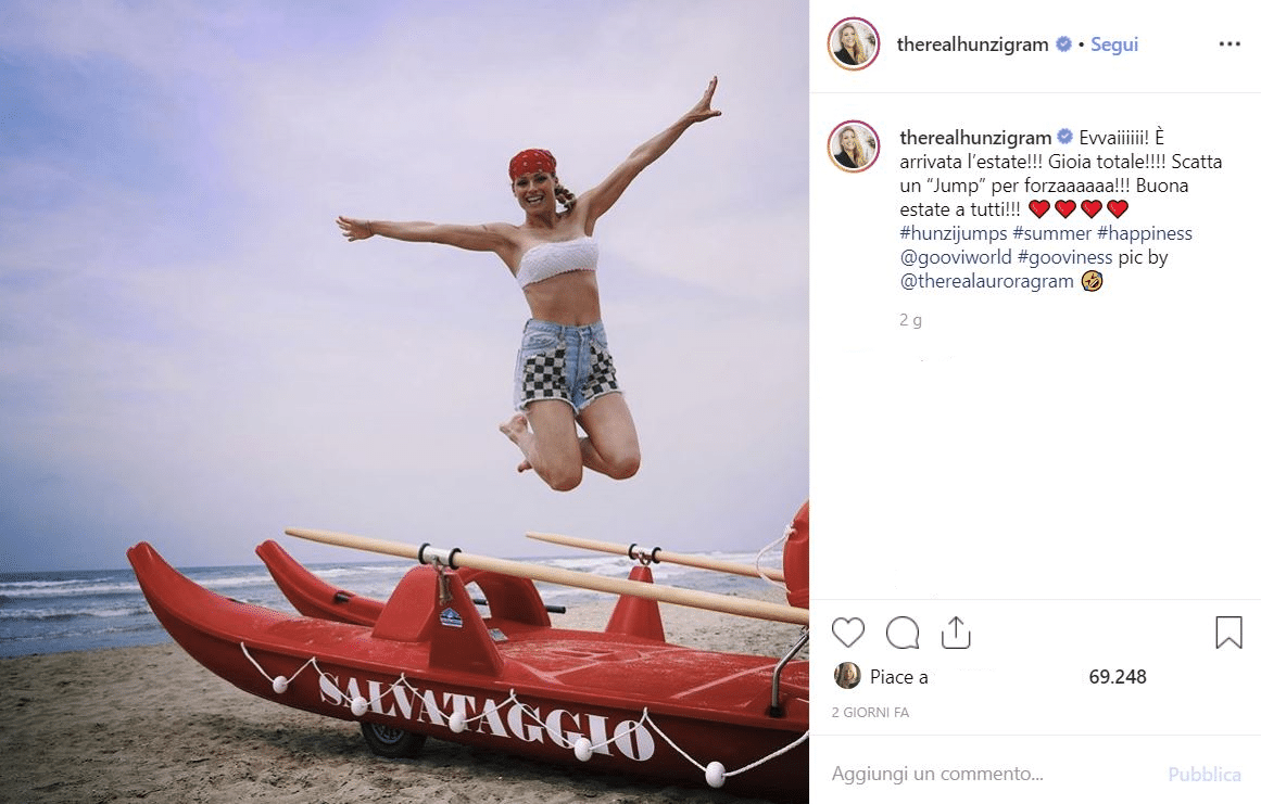“Evvaiiiiii! È arrivata l’estate!!! Gioia totale!!!! Scatta un “Jump” per forzaaaaaa!!! Buona estate a tutti!!!”, ha scritto Michelle Hunziker accanto alla foto. In tanti, però, si sono chiesti se quella foto fosse vera. In tanti si sono insospettiti e hanno chiesto spiegazioni alla conduttrice del tg satirico di Canale 5, che, però, non ha ceduto alle pressioni e è rimasta trincerata nel suo silenzio.