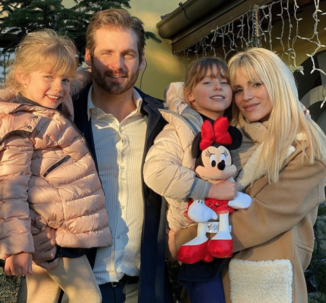 Sul suo profilo Instagram, la showgirl svizzera ha condiviso diverse foto che la ritraggono felice con il marito e con le loro due figlie, Sole e Celeste.