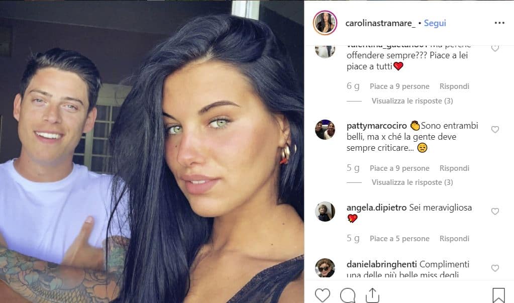 Succede tutto a commento di una vecchia foto che ritrae i due insieme, postata su Instagram da Carolina il 22 giugno scorso insieme a una citazione del cantante Domenico Modugno. “Tu si nà cosa grande”, scrive Carolina nella dedica al fidanzato.