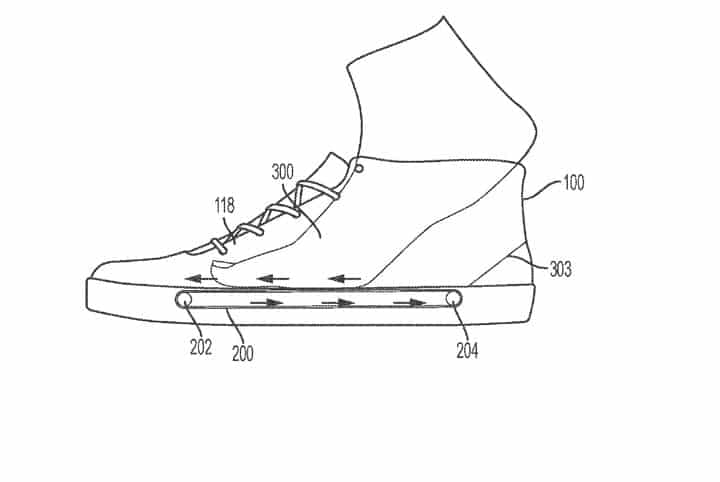 Il brevetto è stato depositato agli inizi di maggio e prevede il posizionamento di un “elemento trasportatore girevole” nella suola della scarpa.