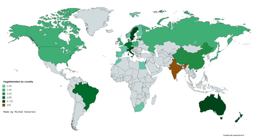 La mappa dei paesi con il maggior numero di vegetariani nel mondo