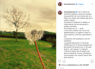“Il mio animo Disney non mi ha mai abbandonato e la voglia di vivere un amore sereno continua a permeare dentro di me. Le persone non cambiano e non SI cambiano. La grande delusione e l’immensa sofferenza che mi faceva piangere sul pavimento di camera mia, mi ha resa donna… per questo, lo ringrazio”, prosegue il post.