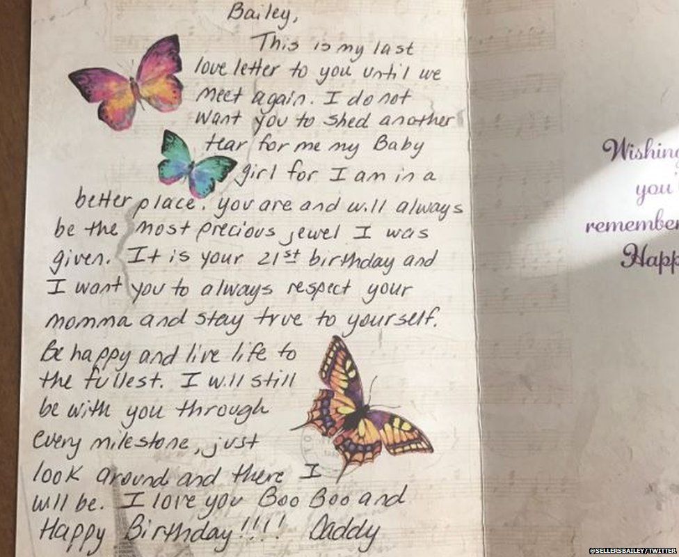 Per cinque anni, Bailey Sellers ha ricevuto dei fiori da parte del padre in occasione del suo compleanno. Quest'anno è l'ultimo e lei ha voluto condividere le ultime parole che lui le ha scritto