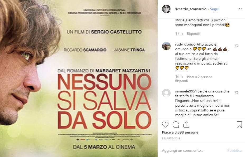 “Non pensavo fossi così infame”, scrive qualcuno sulla pagina Instagram dedicata a Scamarcio che conta 37 mila follower.