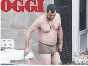 Salvini in mutande – Il vicepremier Matteo Salvini è stato paparazzato in mutande mentre si dedica al giardinaggio sul terrazzo della casa al mare dei suoi genitori. Il leader della Lega indossa un paio di boxer attillati color verde militare e appare intento a dedicarsi alle faccende di casa.