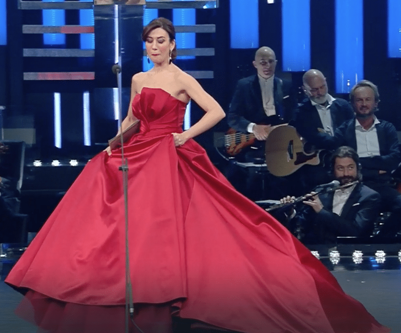Con l’attrice, sul palco dell’Ariston, ci sono Claudio Bisio e Claudio Baglioni. Lo sguardo, però, sarà tutto rivolto a lei e al look scelto non solo ogni sera, ma di ora in ora.