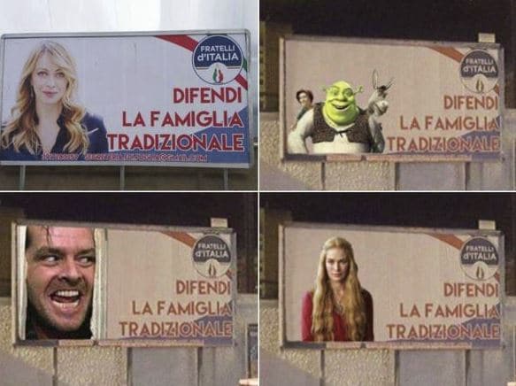 4. Giorgia Meloni da paladina della famiglia a Schrek