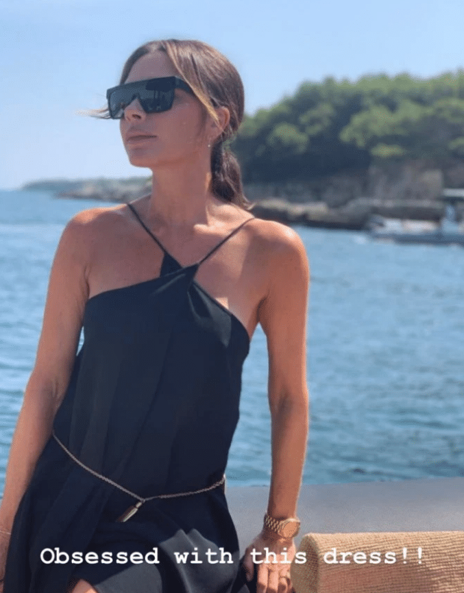 La sposa del calciatore David Beckham, con cui a luglio ha celebrato i 20 anni di matrimonio, condivide su Instagram alcune immagini mozzafiato, in cui indossa un vestito nero da cui dice di essere “ossessionata”, sorretto a livello del bacino da una sottile catenella.