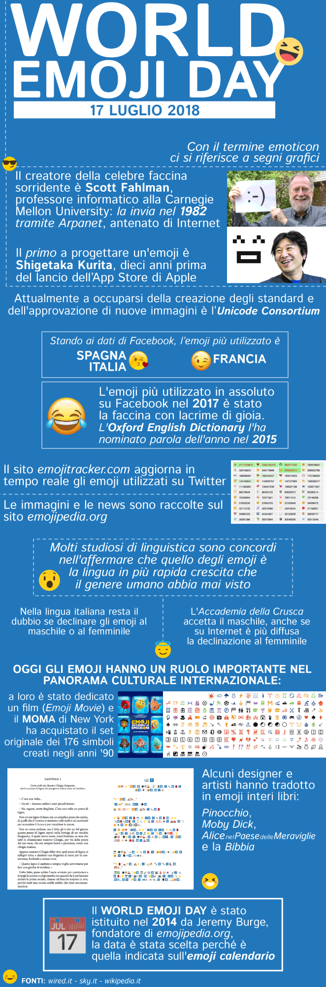 Il 17 luglio ricorre il World emoji day 2018, la giornata delle popolari “faccine”. Si tratta di una giornata istituita nel 2014, scelta perché è la data che compare sull’emoji che raffigura il calendario.