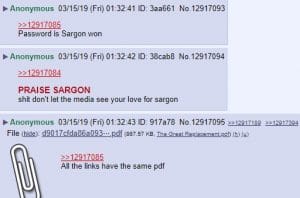 E non a caso la password creata dai camerati di Tarrant per “difendere” lo scritto e il video della strage di quello che è stato fin da subito definito “un eroe” è stata, per i file caricati su mega links, “sargon won”.