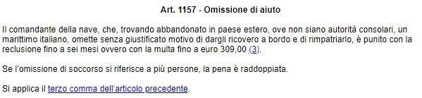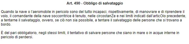Inoltre, nel caso in questione, “il soccorso è stato effettuato in ottemperanza agli artt. 490 e 1158 del codice della navigazione italiana”.