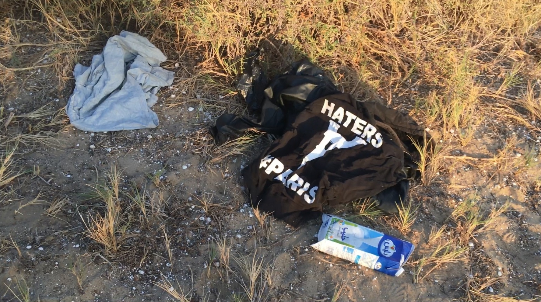 Sul posto, proprio mentre TPI effettuava le riprese delle immagini che vi proponiamo nel servizio, anche l’inviato delle Iene Cristiano Pasca che, ispezionando i vestiti abbandonati sul terreno dai migranti, ha fatto la preoccupante scoperta della felpa nera con la scritta bianca “Haters #Paris”, Odiatori di Parigi, con in mezzo un’immagine della Tour Eiffel capovolta.